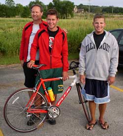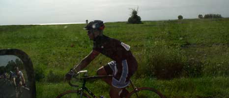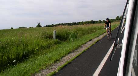 | Evan passing the support van, notice Lake Michigan in the background, the ride was along the lake. ... is that John Hannah in the mirror ... probably not! | |||||||||||||||||||||||||||