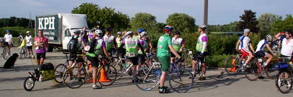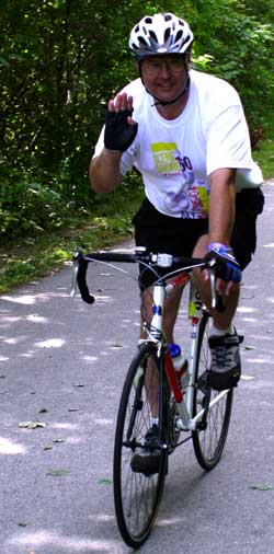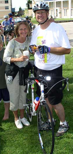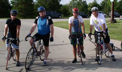 July 24 & 25 - Several family members John Hannah, Dave Johnson, Evan Johnson, Deren Johnson, Paula and Chic Hall rode in this years Lymphoma & Leukemia Society's - Scenic Shore 150 Bike Tour. They joined cyclists from all over the country on July 24 and 25, 2004. It started in Mequon, WI.and ended in Sturgeon Bay, WI.. Other family members (Dana, Jenna, Randy Hilgers; Jeri Johnson; Darci, Jim, Dan, Matt Hannah and Barkley the dog) rode along the way in a support van for several rest stops, before heading home, next year we plan on staying with the group. We are planning on riding again next year and anyone who is interested in riding, pledging or joining us in a support vehicle should contact Dave Johnson at 847-459-3989 or email Dave at djohnsoda@comcast.net |